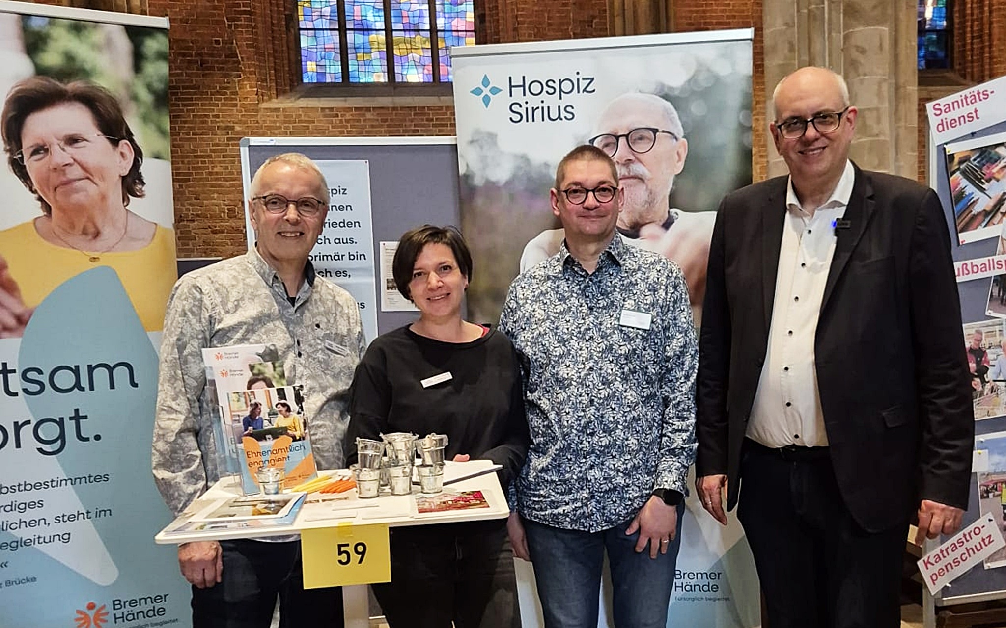 Auf der Aktivoli, die 2025 im Rathaus und in der Kirche Unser Lieben Frauen stattgefunden hat, haben wir über die vielfältigen Möglichkeiten informiert, ehrenamtlich in unseren beiden Hospizen Brücke und Sirius mitzuwirken. Genau wie die Hauptamtlichen gehören die Ehrenamtliche hier fest zu den Teams.