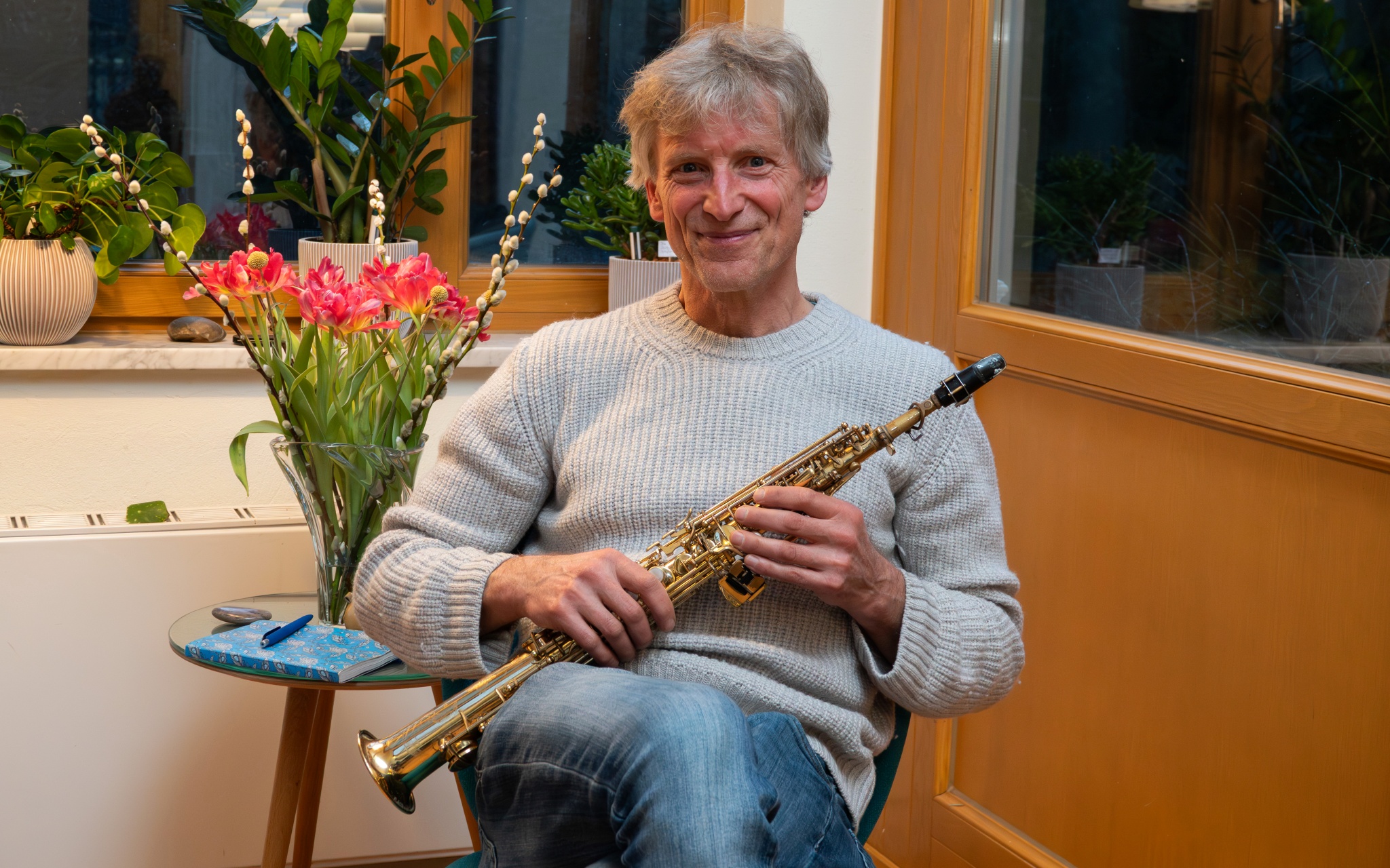 Schon als Kind entdeckte Jörg Riedel seine musikalische Ader. Heute gilt seine Leidenschaft dem Saxofon und dem Jazz. Regelmäßig kommt er in unsere Hospize Brücke und Sirius, um die Räume mit Musik zu füllen. „Musik ist einfach was Schönes und auch etwas sehr Emotionales. Und ich denke, dann bietet sich das Hospiz an, wenn Worte manchmal gar nicht so wichtig sind, sondern einfach auch mal Klänge eine Rolle spielen.“ Riedel erlebt die Hospize nicht als traurige Orte. Für ihn steht vielmehr die besondere Atmosphäre im Mittelpunkt: „Es ist ein Platz, um sich zu verabschieden und das kann natürlich traurig sein, aber das kann auch friedlich sein.“