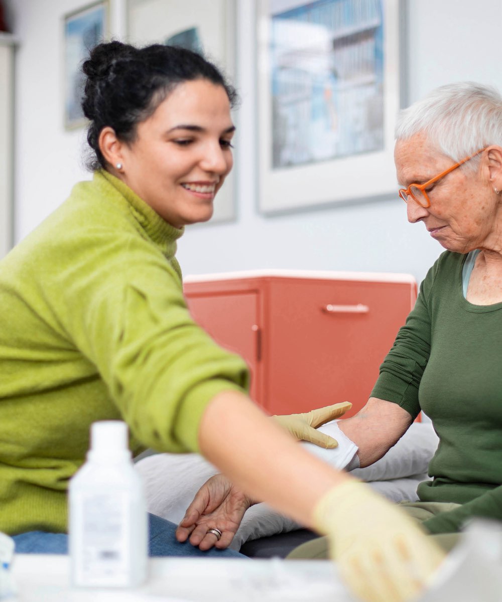 Wie Ihre persönliche Begleitung aussehen kann, besprechen wir in Ruhe bei einem ersten Hausbesuch. Der Behandlungsplan orientiert sich an Ihren Wünschen und Bedürfnissen. Er wird fortlaufend an Ihre jeweilige Situation angepasst. Dabei beziehen wir auch gern Ihre Zugehörigen mit ein. Je nach Bedarf vereinbaren wir tägliche oder mehrfach wöchentliche Hausbesuche.